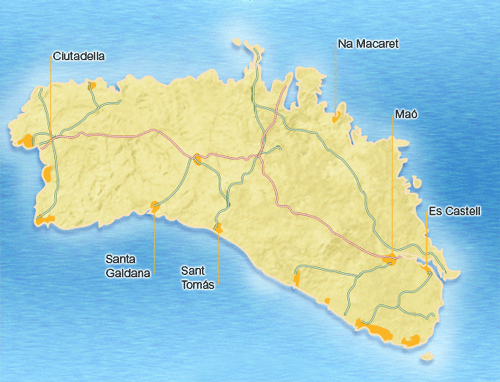 Los colores blancos de estas calas y playas son fruto de la llegada a ésta de miles de restos calcáreos de fauna que habita sobre las praderas de Posidonia oceanica. En Mahón, en la Cala de San Esteban se puede visitar la torre de defensa d´es Penjat y el fuerte Marlborough, un reducto militar que fue parte de la demolida fortaleza de San Felipe. Al extremo oeste de la isla y cerca de Ciutadella, encontraremos calas paradisíacas como Cala en Blanes, Cala en Forcat, Cala en Brut, Cala Santandria y Cala Blanca