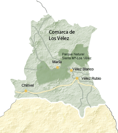 Chirivel, María, Vélez Blanco y Vélez Rubio. Cuatro pueblos con personalidad propia en una comarca que reúne todos los alicientes para viajar con los niños. Un sorprendente patrimonio arqueológico, monumentos de interés histórico, cultural y artístico; un entorno natural que invita a la práctica de deportes al aire libre, suculenta gastronomía y místicas fiestas y tradiciones. Todas estas manifestaciones son testigos indiscutibles de un floreciente pasado, del que los velezanos se sienten herederos, conservadores y transmisores. Una singular riqueza que enamora y cautiva al visitante.