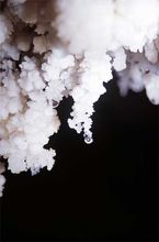 estalagmita del piso y una estalactita del techo. - Concreción: Resultado del depósito en forma cristalina de sustancias disueltas en el agua.