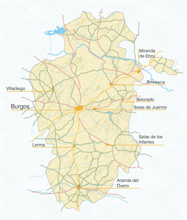 Burgos es una tierra para disfrutar con todos los sentidos. El acervo popular atesorado durante siglos por los habitantes de la provincia y del que son buena muestra sus ricas tradiciones, su casi inabarcable cancionero, sus fiestas, y, en algunos casos, sus todavía ancestrales formas de vida han dejado un poso incomparable y que confiere al burgalés un carácter único y singular. Gozar de su clima, perfecta síntesis entre la suavidad europea y la luminosidad Mediterránea y disfrutar de sus aguas en los Balnearios de Valdelateja y Corconte que ofrecen tratamientos terapéuticos gracias a sus fuentes subterráneas; y sentir su diversidad, la palabra que define a la provincia burgalesa, y que es aplicable a la amplia gama de los acogedores alojamientos que le esperan para su merecido descanso: monasterios que invitan al sosiego y a la reflexión lejos de la turbulenta vida moderna, establecimientos hoteleros, casas de turismo rural o degustar su afamada gastronomía y paladear sus excelentes vinos en alguno de sus restaurantes...