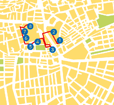 Carlos V, considerado por muchos como el más europeo de los reyes españoles, continuó en Granada la tarea reformista de sus abuelos, los Reyes Católicos. El estilo renacentista se impone ya rotundo en este itinerario que descubre los siguientes monumentos y rincones de la ciudad granadina: antiguo Convento del Carmen (actual Ayuntamiento); Corral convento del Carbón; Alcaicería; Plaza de Alonso Cano; Plaza de las Pasiegas; Fachada de la Catedral; Puerta del Perdón; y Catedral. Con el discurrir del siglo XVI, la trama urbana de la capital moderna se superpone poco a poco a la musulmana. La Catedral, considerada el primer edificio renacentista de España, es obra de Diego de Siloé. En un principio, el deseo de Carlos V era que acogiera el panteón de la primera dinastía hispana, al considerar insuficiente la Capilla Real. Iniciada por Egas y rematada por Diego de Siloé, el grandioso templo se finalizó en 1667 con un portada barroca del granadino Alonso Cano. Muy cerca de la Catedral se encuentra el Corral del Carbón, construido en 1336 como lonja musulmana. Después de la conquista cristiana fue vendido en subasta pública. En aquel momento, se pasó a llamar el Corral de Carbón ya que los carboneros se alojarían en esta construcción. También fue utilizado como teatro a principios del siglo XVI.