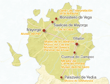 Esta ruta incluye un recorrido por los museos y centros de interpretación más atrtactivos de la comarca. El Museo del Pan en Mayorga de Campos será el primero de estas características que exista en España. Se ubica en la iglesia de San Juan de Mayorga de Campos, reabilitada para dicho fin. El Museo del Queso de Villalón de Campos se ubica en el edificio de las antiguas escuelas de la avenida del Parque. Además se pueden visitar el Centro de Interpretación de la Matanza en Palazuelo de Vedija, el C.I. de la Avifauna en Monasterio de Vega, el C.I. de la Caza en Saelices de Mayorga; así como el Museo del Calzado Vibot, “El Palomar del Abuelo” (Centro de Interpretación del Palomar) y la Exposición la Labranza del Ayer en Villalón de Campos, y el Museo de Arte Sacro en Cuenca de Campos.